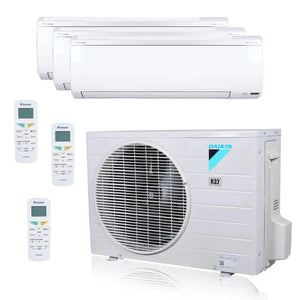 The Daikin MXM Series 36000 BTU 20.6 SEER2 3 Zone R32 Ductless Mini Split Heat Pump System - 12K+18K+18K uses advanced inverter technology to maintain stable temperatures and save energy. With a 20.6 SEER2 rating, 12 EER2, and 9.7 HSPF2, it provides efficient cooling and heating in extreme ambient conditions, all within a quiet, easy-to-install design.